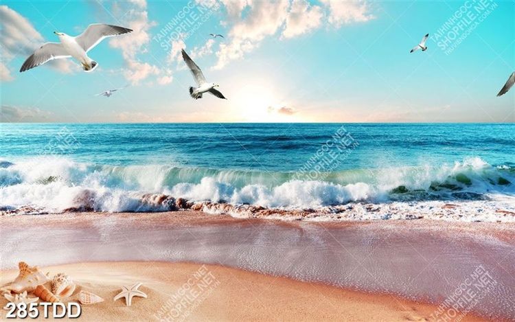 Tranh sóng biển và chim hải âu file psd