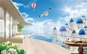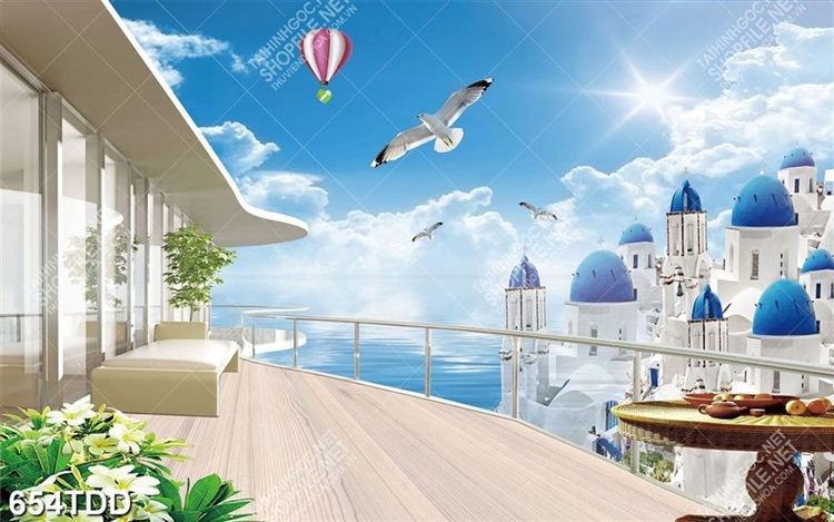 Tranh ban công nhìn ra tòa lâu đài trên biển