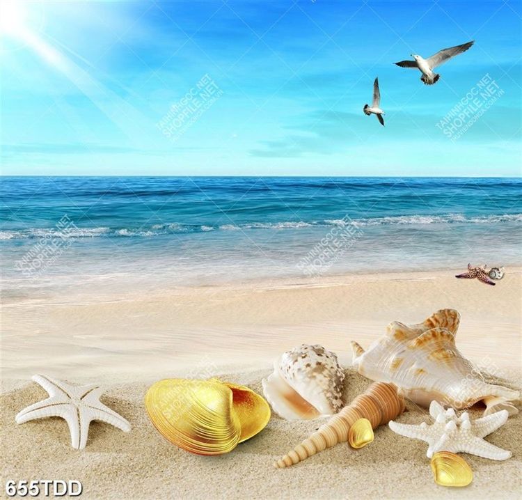 Tranh bãi cát và đại dương file gốc