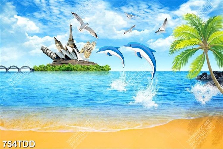 Tranh đôi cá heo tung tăng trên biển chất lượng cao
