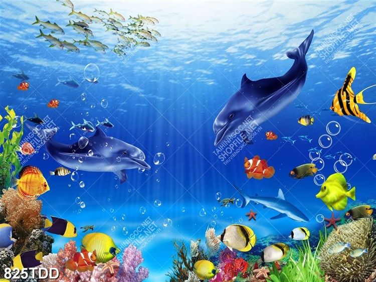 Tranh 3D đôi cá heo dưới đáy biển chất lượng cao