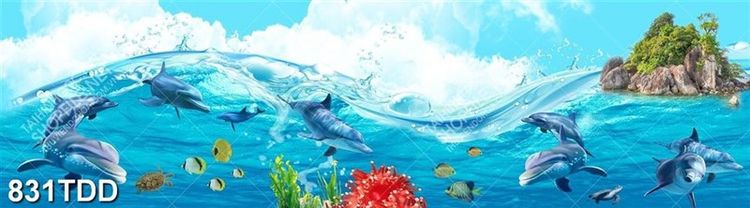 Tranh sóng biển và đàn cá heo trang trí tường đẹp