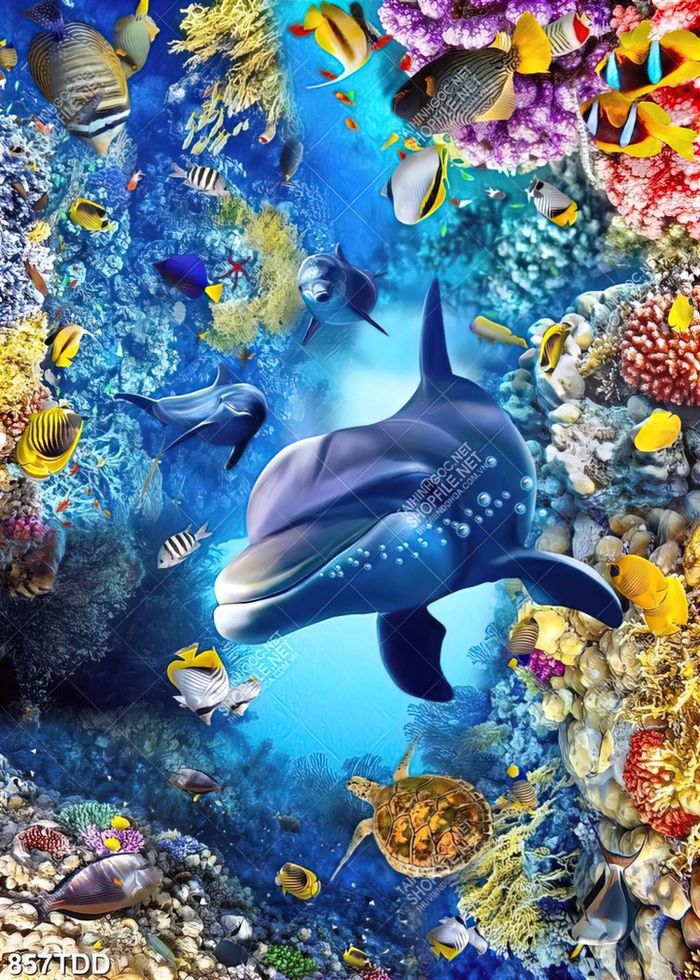 Tranh 3D hang động đá san hô đẹp độc đáo