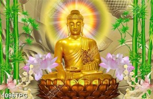 Tranh tươợng Phật Thích Ca bằng vàng và tre