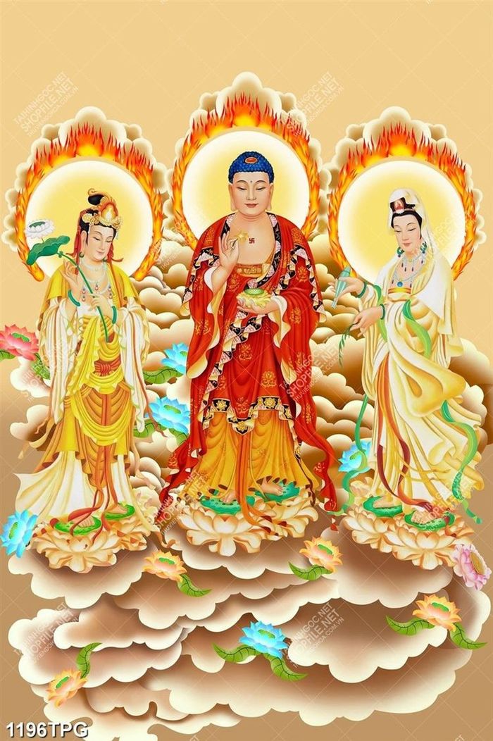 Tranh Đức Phật và 2 Bồ Tát in kính đẹp chất lượng cao