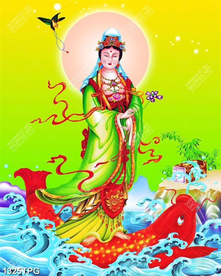Tranh Phật Quan Âm Bồ Tát in kính chất lượng cao