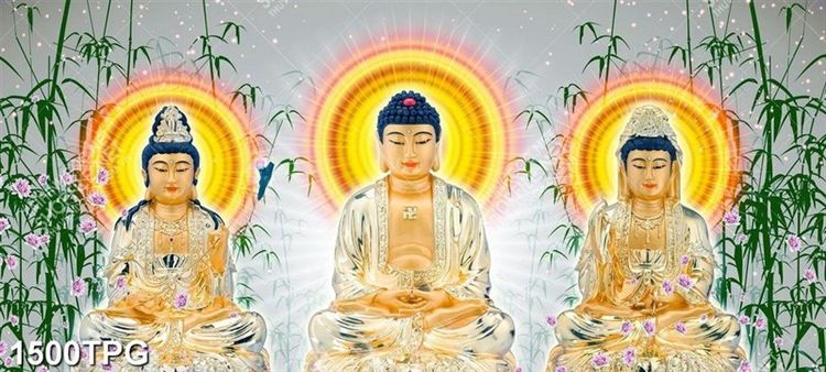 Tranh tượng Tây Phương Tam Thánh nền trúc file psd