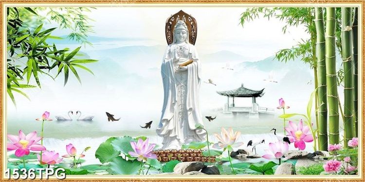 Tranh tượng Quan Thế Âm và hồ Sen