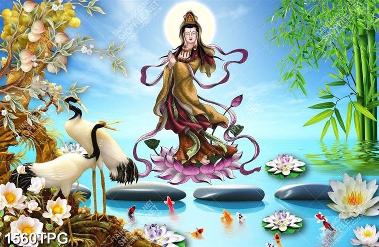 Tranh Quan Âm giả ngọc đẹp
