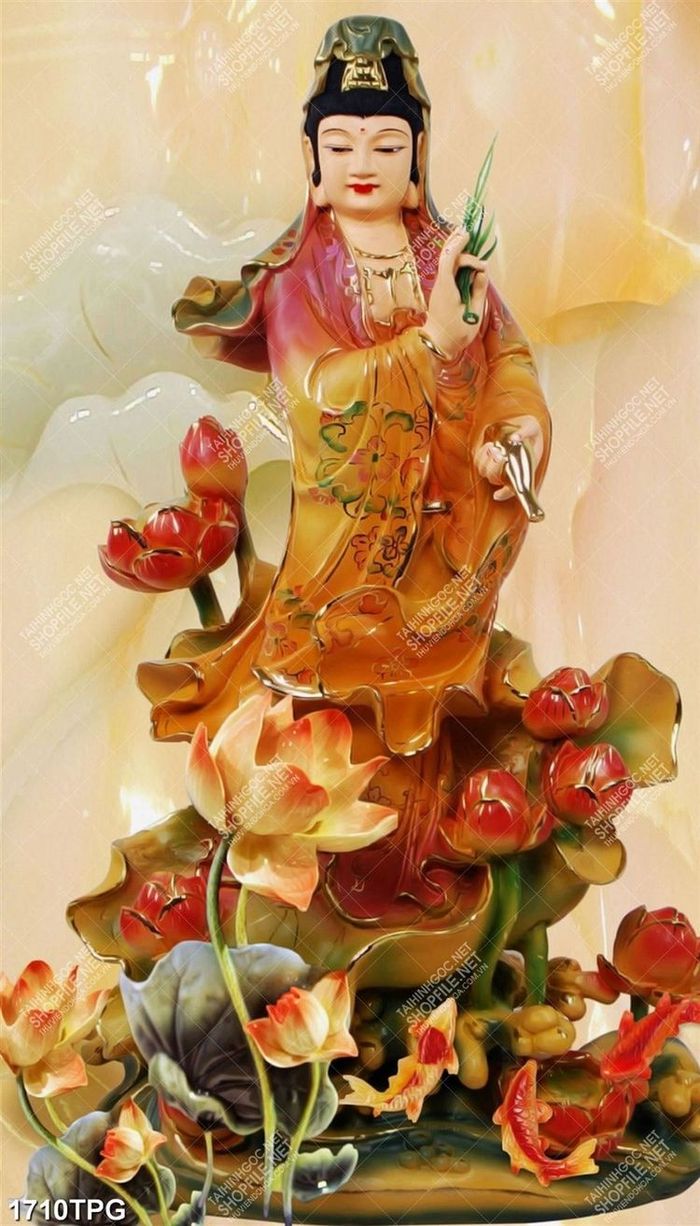 Tranh giả ngọc Phật Bà Quan Âm chất lượng cao