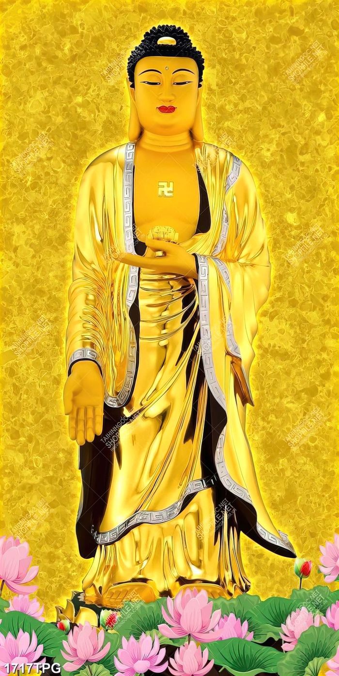 Tranh Phật A Di Đà nền mạ vàng đẹp