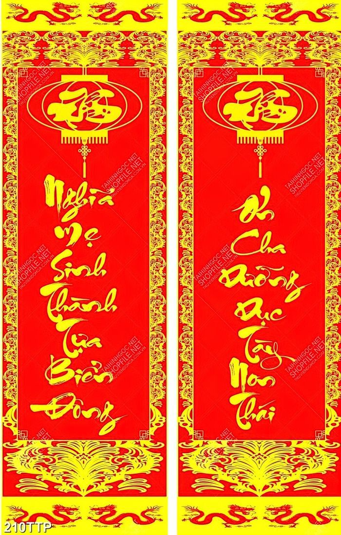 Tranh thư pháp trang trí câu đối về cha mẹ