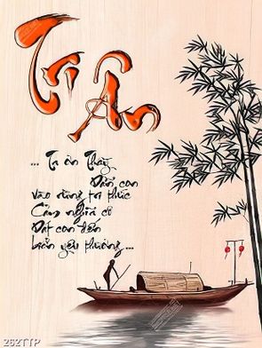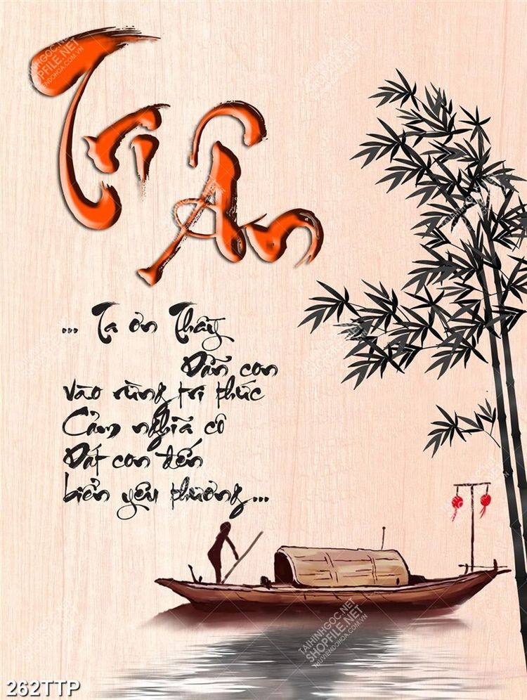 Tranh thư pháp nghệ thuật người lái đò trên sông