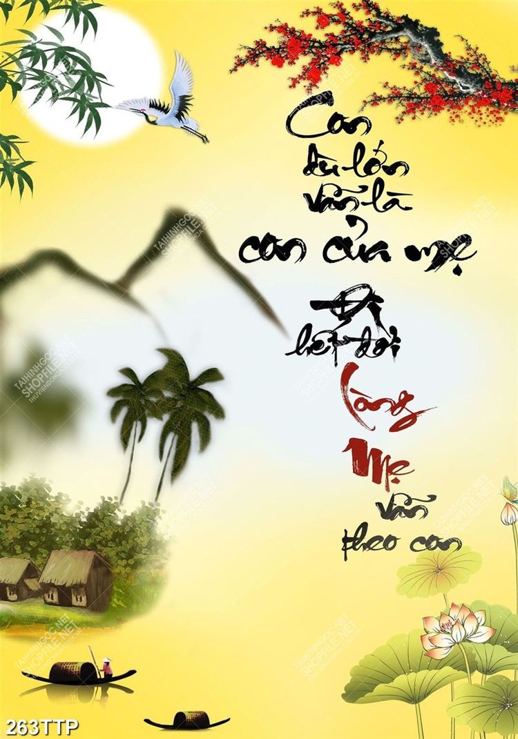 Tranh thư pháp in canvas công ơn của cha mẹ