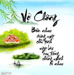 Tranh thư pháp in uv câu đối về tình cảm vợ chồng