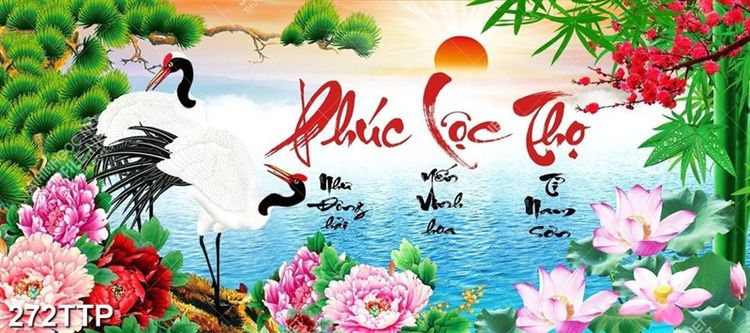 Tranh thư pháp trang trí đôi chim hạc bên sông