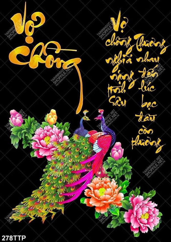 Tranh thư pháp nghệ thuật mẫu đơn và chim công