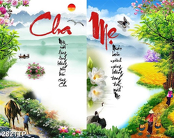 Tranh thư pháp in uv người lái đò trên dòng sông