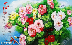Tranh thư pháp nghệ thuật những bông hoa mẫu đơn