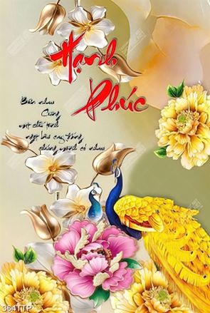 Tranh thư pháp nghệ thuật đôi chim công bên hoa