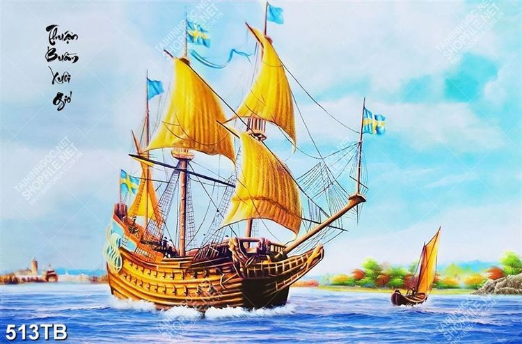 Tranh sơn dầu thuận buồm xuôi gió file psd