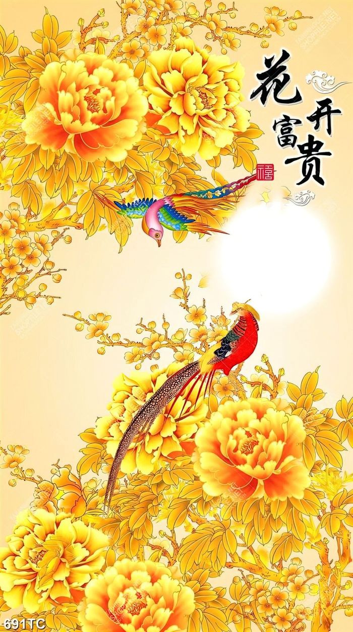Tranh tài lộc hoa mẫu đơn in kính đẹp