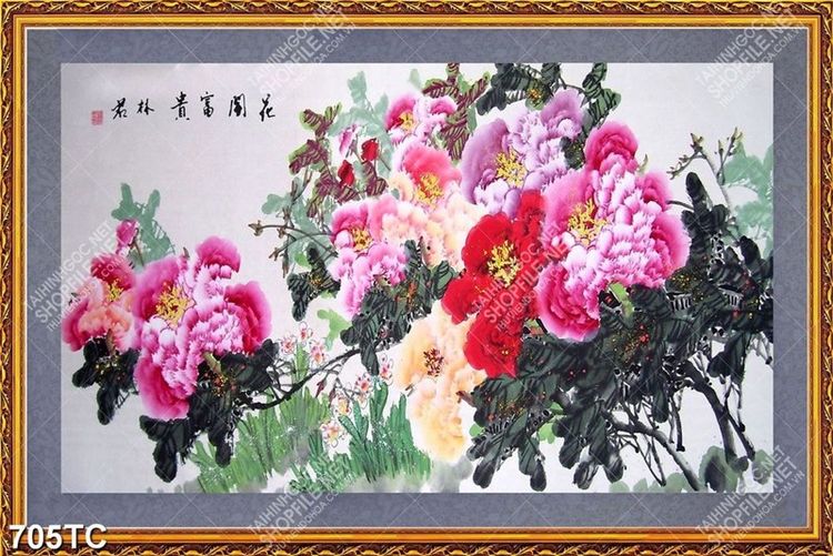 Tranh sơn dầu hoa mẫu đơn nghệ thuật