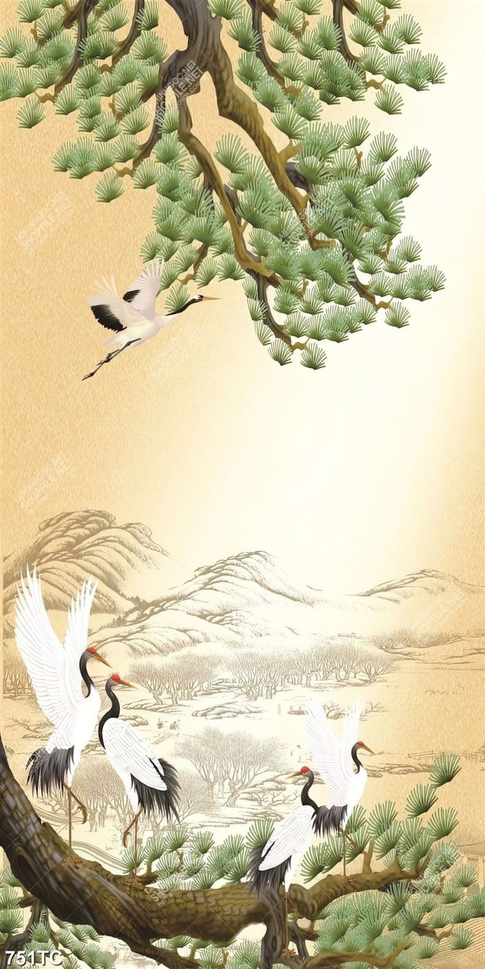 Tranh cây tùng và chim Hạc đẹp