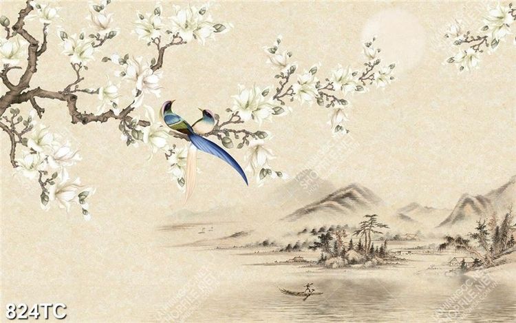 Tranh hoa mộc lan và chim
