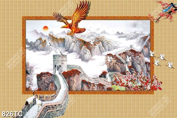 Tranh 3D vạn lý trường thành và đại bàng