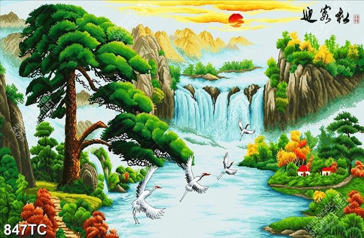 Tranh sơn dầu thác nước phong thủy