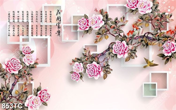 Tranh chim Hạc và hoa đào mùa xuân chất lượng cao