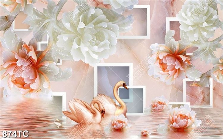 Tranh 3D chim thiên nga và hoa chất lượng cao