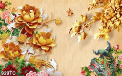 Tranh hoa mẫu đơn và chim công