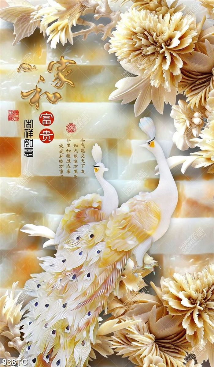 Tranh giả ngọc chim công file psd