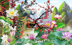 Tranh hoa sen và chim công phong thủy