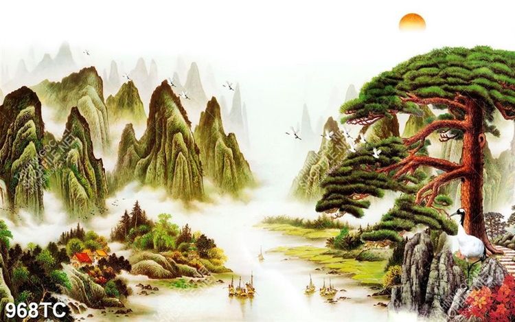 Tranh sơn thủy in kính đẹp