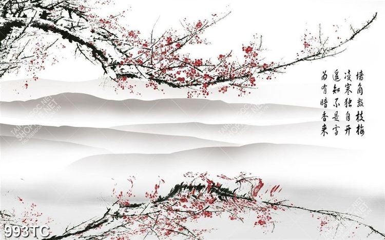 Tranh thư pháp hoa đào chất lượng cao