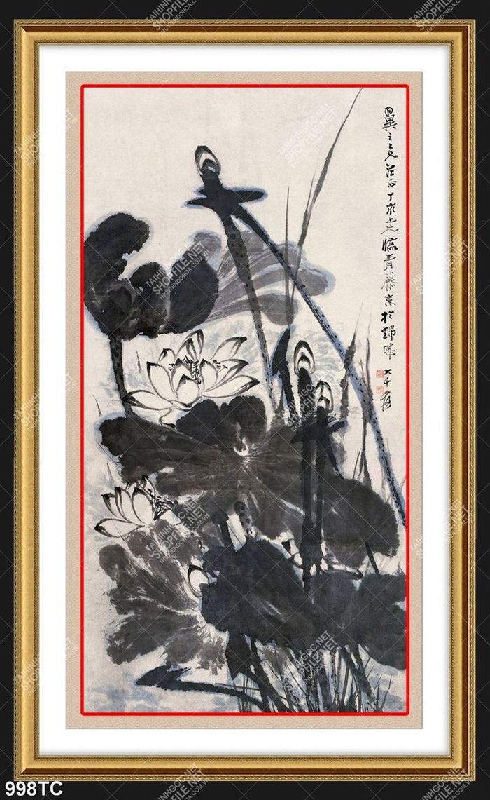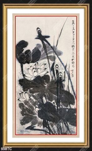 Tranh thư pháp hoa sen