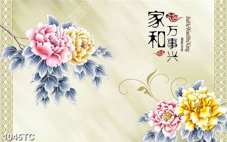 Tranh hoa mẫu đơn thư pháp