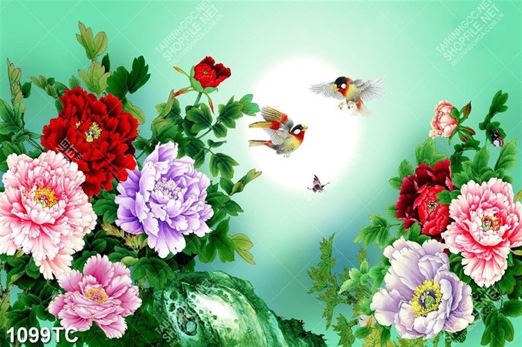 Tranh mẫu đơn in kính chất lượng cao