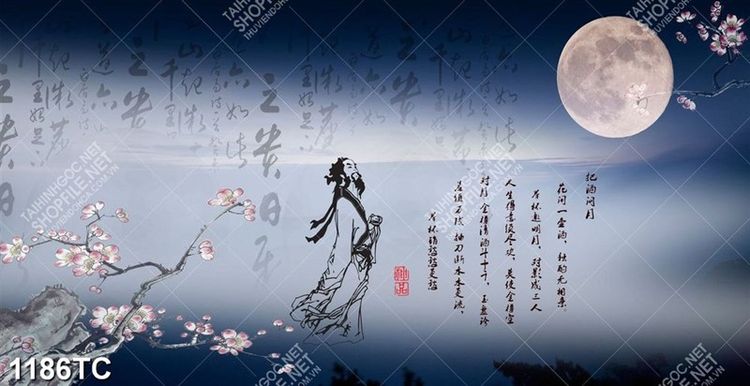 Tranh thư pháp ngắm trăng