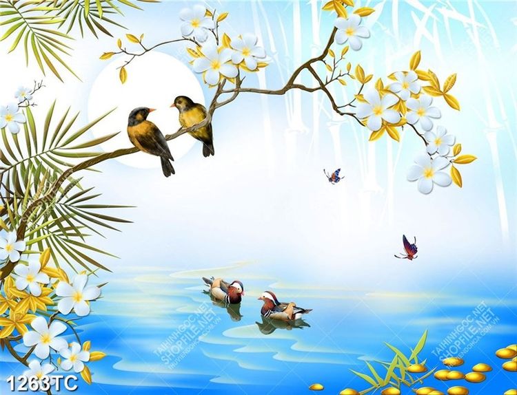 Tranh hoa mai và đôi chim uyên ương