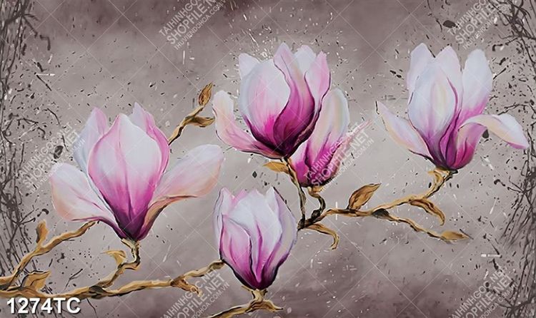 Tranh sơn dầu hoa mộc lan in canvas đẹp