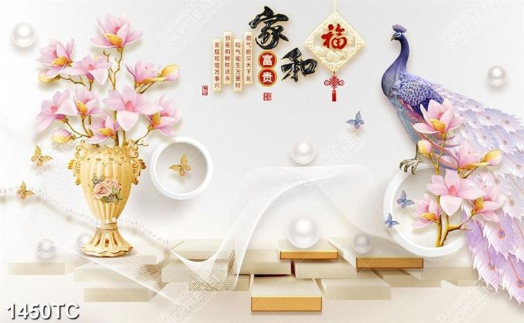 Tranh 3D bình hoa và chim công