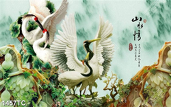 Tranh 3D chim Hạc nền giả ngọc đẹp