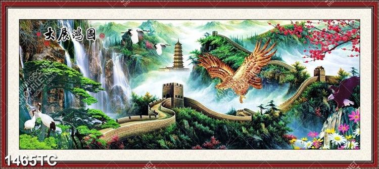 Tranh sơn dầu thác và chim Hạc, Đại Bàng
