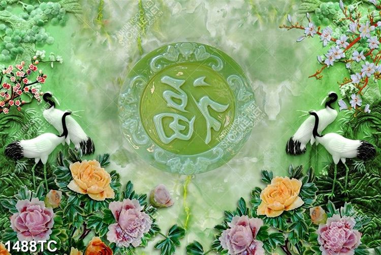 Tranh 3D chim Hạc giả ngọc và mẫu đơn