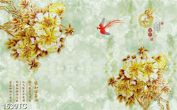 Tranh hoa mẫu đơn vàng và chữ thư pháp