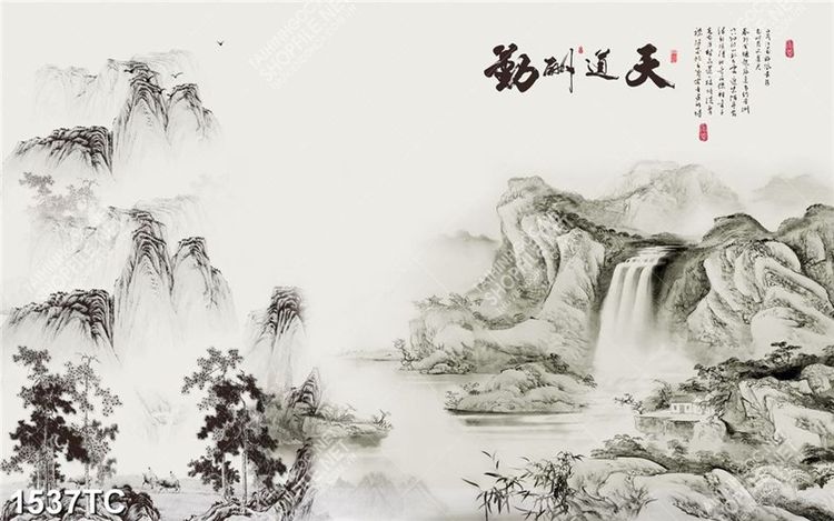 Tranh thư pháp thủy mặc in kính đẹp